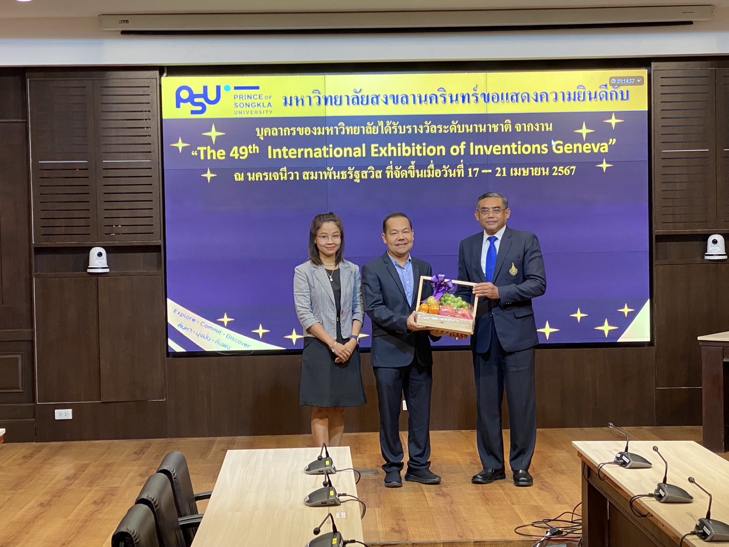 วันที่ 2 กรกฎาคม 2567 ในการประชุมคณะกรรมการบริหารมหาวิทยาลัยสงขลานครินทร์ ได้จัดกิจกรรมมอบของที่ระลึกแก่บุคลากรมหาวิทยาลัยที่ได้รับรางวัลระดับนานาชาติจากงาน "The 49th International Exhibition of Inventions Geneva" ณ นครเจนีวา สมาพันธรัฐสวิส ที่จัดขึ้นเมื่อวันที่ 17 - 21 เมษายน 2567 ที่ผ่านมา